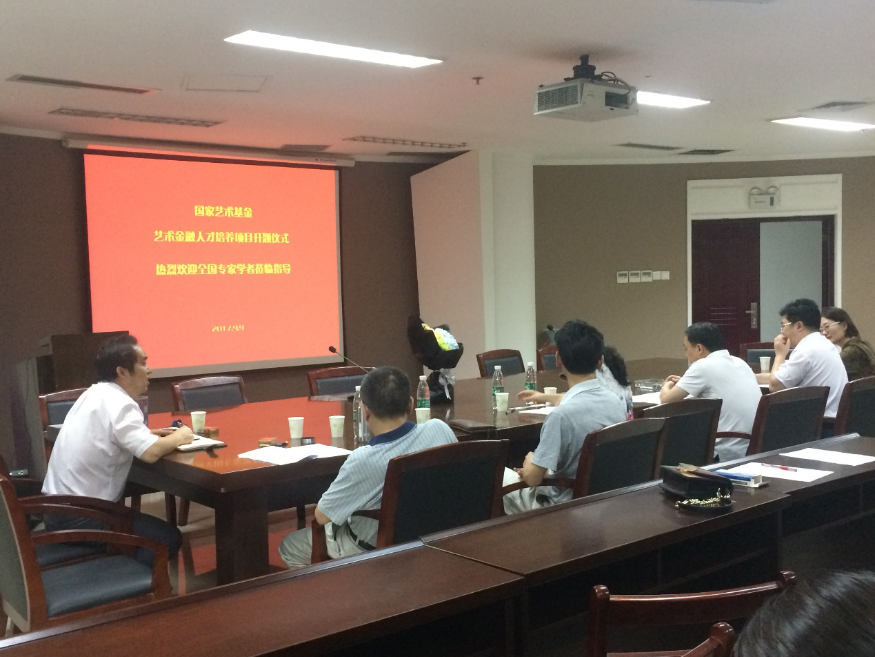 2017年9月9日下午,国家艺术基金艺术金融人才培养项目开题仪式在我院会议室如期举行。中国人民大学经济学院教授、中国人民大学中国艺术品金融研究所副所长黄隽教授、湖北工业大学艺术与设计学院周峰院长、华中文交所高级经济师程家忠先生、华中师范大学经济与工商管理学院院长邓宏乾,华中师范教育学院但昭彬教授、湖北大学李碧红教授及美院师生出席了本次开题仪式。美术学院徐晓庚院长担任会议主持,他代表美术学院对各位专家的到来表示热烈的欢迎。