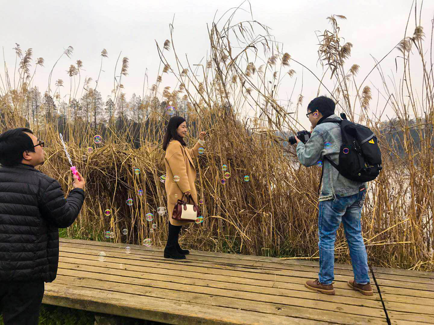 本次主题摄影由女教职员工自行寻找拍摄景地,然后由随队的专业摄影师拍摄。大家从东湖绿道出发,一路踏青,园区内梅林、东湖、水杉林等等园区都让美院爱美的女教职员难以取舍,魏勇主席还细心地准备了很多拍摄的小道具,让拍摄活动进行得更有趣味。