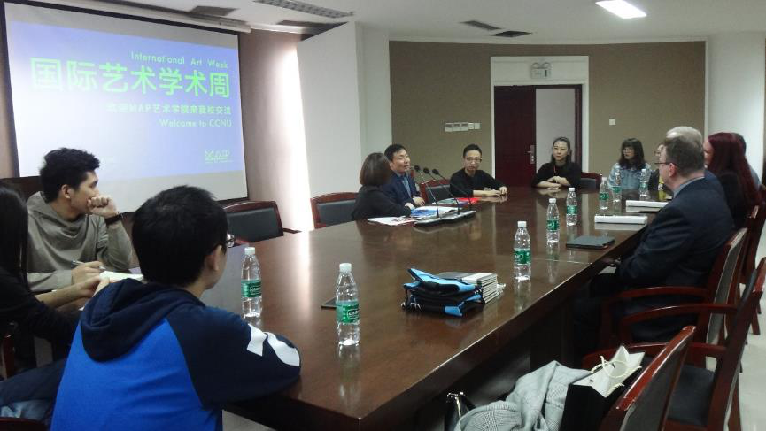 4月10日上午,副院长王文新教在交流会上授谈到,华中师范大学历史悠久,人文气息浓厚,美术学院扎根于创新型艺术人才的培养,自立院以来,在艺术创作、教育方面为艺术界输送了众多优秀人才,数字媒体艺术专业力在培养复合型应用设计人才,是我院未来发展的重点学科。Wes教授表示,数字媒体艺术是一门综合造型、设计、交互、计算机等领域的交叉型前沿学科,MAP学院涵盖艺术、表演、科学等多个专业领域,科研设备齐全,富有支持性的教学环境能够帮助学生进行多媒体艺术实践、从事跨学科艺术研究,他真诚地期待美术学院的师生到MAP学院进行学术交流。此后,双方就合作办学事宜进行了详细交流。