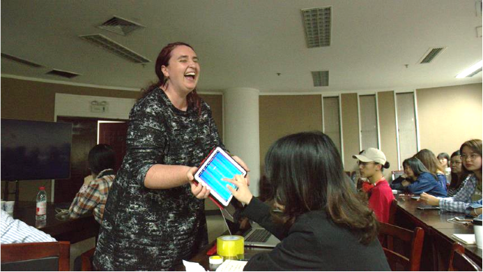 下午,教授Rebecca和John展示了声音、表演、投影、互动软硬件及定制互动艺术工具在MAP学院跨媒体艺术工作室艺术实践中的具体运用,并与我院师生现场合作,运用该院研发的数媒App创作了以“黄鹤楼”、“东湖”、“江滩”为主题的武汉记忆系列作品。真切、生动的创作体验点燃了同学们的创作热情,也引发了两院师生对艺术与科学、社会的关系的深入思考。