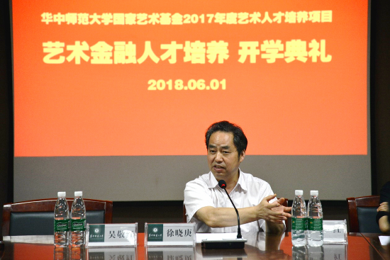 2018年6月1日,国家艺术基金资助的“艺术金融人才培养”项目在华中师范大学美术学院举行开班仪式,来自全国20多个省市的50多名学员将在桂子山上进行为期3个月的专业培训。开班仪式上,华中师范大学党委副书记覃红,湖北省古建筑保护中心专家吴敬红,华中师范大学文学院教授张三夕,湖北省文化厅文艺处处长肖华慧,古瓷修复专家李奇教授,湖北大学教授李碧红、美术学院副书记潘洛琳、科研处卞亚琴、财务处焦向明老师等出席了开班仪式。