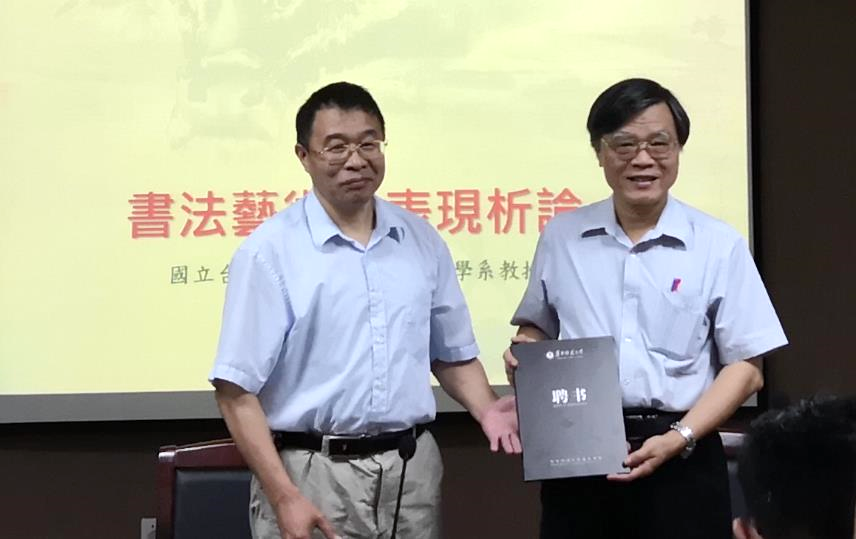 林进忠教授被聘为我院客座教授,美术学院分党委书记罗贻文为林进忠教授颁发聘书并合影留念。美术学院历来与台湾诸多高校有联合培养、学术交流的办学经历,林进忠教授此次访学交流也将为我院的人才培养和学科建设提供新的契机。
