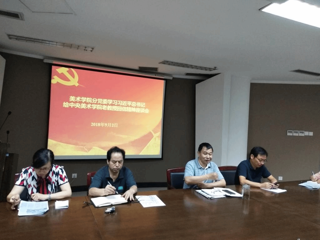 美术学院党委书记罗贻文表示在中央美术学院建校100周年之际习近平总书记回信给老教授,表明中央对美育工作的重视,这对于美术院系的发展有很大的机遇。我们要在全院迅速掀起学习习近平总书记回信精神的热潮,在学科建设上、教学上、人才培养上贯彻习近平总书记回信的指示精神。