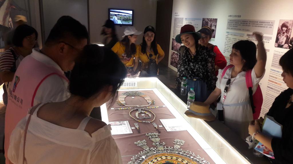 8月6日至8日,这三天是本次访学团最深入了解台湾风土人情的最重要的三天,我们将南下去台中了解台湾本地族群的文化。这三天中,我们了解了将台湾的少数民族笼统归纳为高山族是不正确的,台湾地区目前一共有16个少数民族,分部在台湾本岛和周边岛屿。在九族文化村,我们一行仔细地观看了经过高度还原的台湾少数民族居住环境,包括他们使用的工具、房屋、服饰等等。以往“东番”这个只有在史书中才能见到的词语,如今鲜活地在同学面前呈现出来,使同学对台湾的少数民族有了全新的认识。同样,在客家人文化中心,师生一行了解了由中原迁至台湾地区的客家人为了找寻自身文化身份认同做出的努力,包括语言,文化推广等等方面。在台中“国美馆”,同学们深入地了解了台湾地区艺术圈最活跃的人群,在馆内展示的台湾地区美展中,学生们直接与台湾的当代艺术直接面对面。在美术馆三楼的台湾美术常设展中,同学们可以深入地了解自日据时代以来,台湾地区经过多方融合的沿革——从日本的朦胧画派,到岭南画派传入,再至“渡海三家”与刘国松的崛起,台湾地区的美术就像一个熔炉,融汇了东亚地区所有能够融汇的绘画语言,形成了今日的台湾美术的面貌,成为一个在语言、形式甚至技法上都独树一格的美术创作。在莺歌陶瓷博物馆,这个基于台北地区陶瓷烧制的古窑遗址建立的博物馆,独特地展现了台湾地区陶瓷技术的演进历史,从实用器到高科技,从贵族用器到平民生活用器,莺歌陶瓷博物馆基本上囊括了台湾陶瓷技术的发展史。