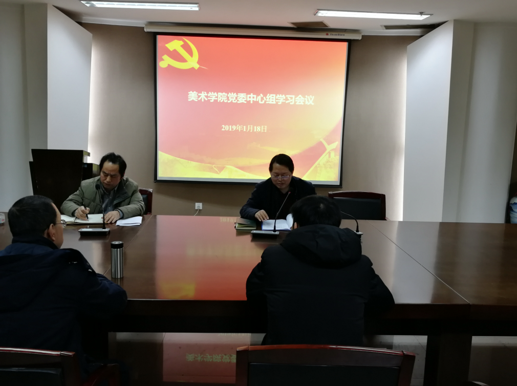 2019年1月18日上午十一点,美术学院党委中心组召开学习会议,参加会议的有学院领导班子和分党委党务干事、教师支部书记,会议由学院分党委书记付义朝主持。