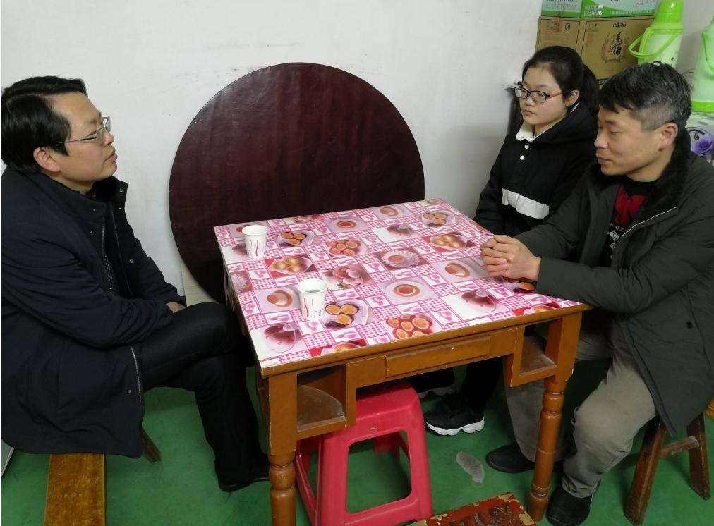 2019年1月29日上午,美术学院分党委书记付义朝参加了我校“百名教师访百家”活动,付书记在2018级辅导员喻颖陪同下,冒着细雨来到了武汉市蔡甸区永安街走访了美院2018级本科生刘义芬同学。