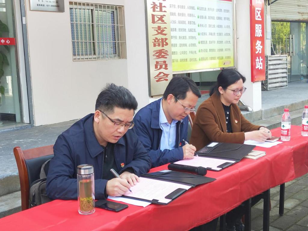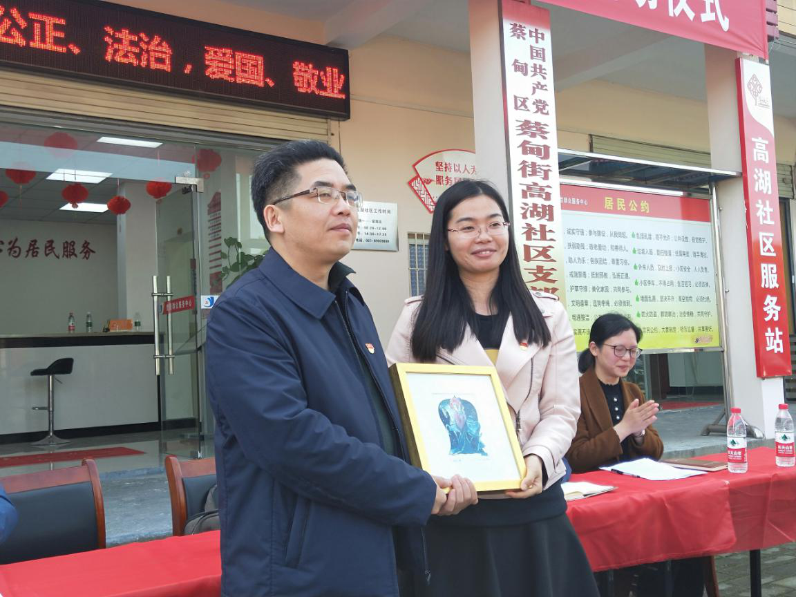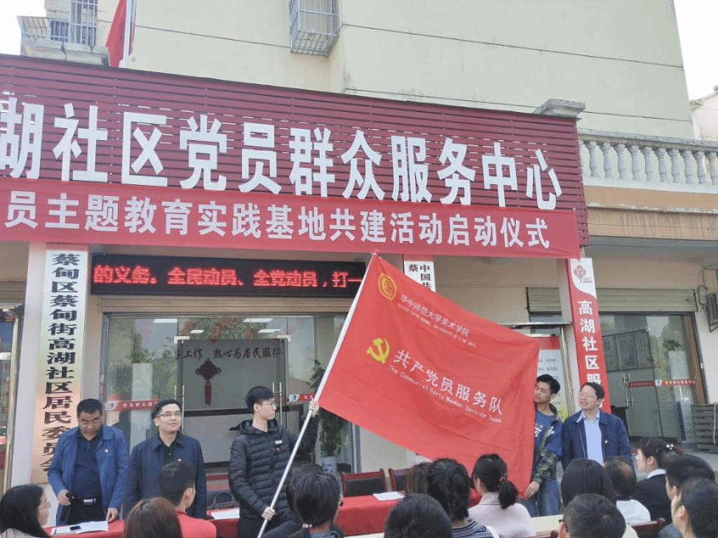 4月12日上午九点,美术学院党委和蔡甸街党工委党员主题教育实践基地共建揭牌仪式在蔡甸区高湖社区党员群众服务中心举行。美术学院党委书记付义朝、蔡甸街党工委书记胡出席了启动仪式,美术学院行政党支部书记王璐、美术教育与造型艺术系支部书记陈曦、教工党员代表、学生支部书记、学生党员代表、蔡甸街机关各党支部党员参加了启动仪式。