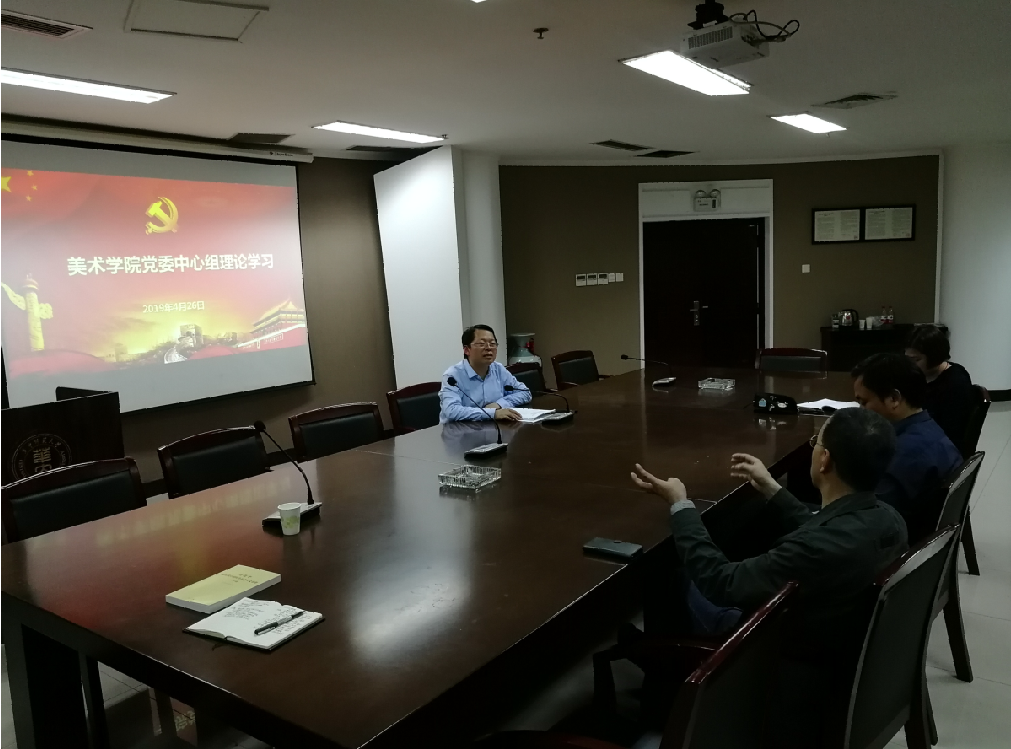 (通讯员 喻颖)4月26日下午,美术学院党委中心组在美术学院五楼会议室开展集中理论学习活动,参加会议的有美术学院分党委书记付义朝、副院长王文新、 党委委员王余、喻颖、陈曦。中心组对《习近平总书记关于总体国家安全观的论述摘要》、“习近平总书记关于思想政治理论课教师座谈会的讲话”等有关内容进行集中学习。付义朝书记强调习近平总书记关于国家安全观的论述是党委必须学习的重要内容,国家安全观也是高校师生必须树立的意识,党的十九大将坚持总体国家安全观纳入新时代坚持和发展中国特色社会主义的基本方略,并写入党章,国家安全是安邦定国重要基石。习近平总书记关于思政课教师座谈会的重要讲话,对当前高校思政课程建设指明了方向,学院教师要抓紧思考如何将专业与思政结合起来,将课堂讲出新意。王文新副院长认为总体国家安全观要求我们统筹发展和安全,增强忧患意识,居安思危。脱贫攻坚是全面建成小康社会的重要举措,也是目前面临的紧迫任务,高校师生应该在这方面有所作为。其他党委委员就学习内容也发表了各自的看法。