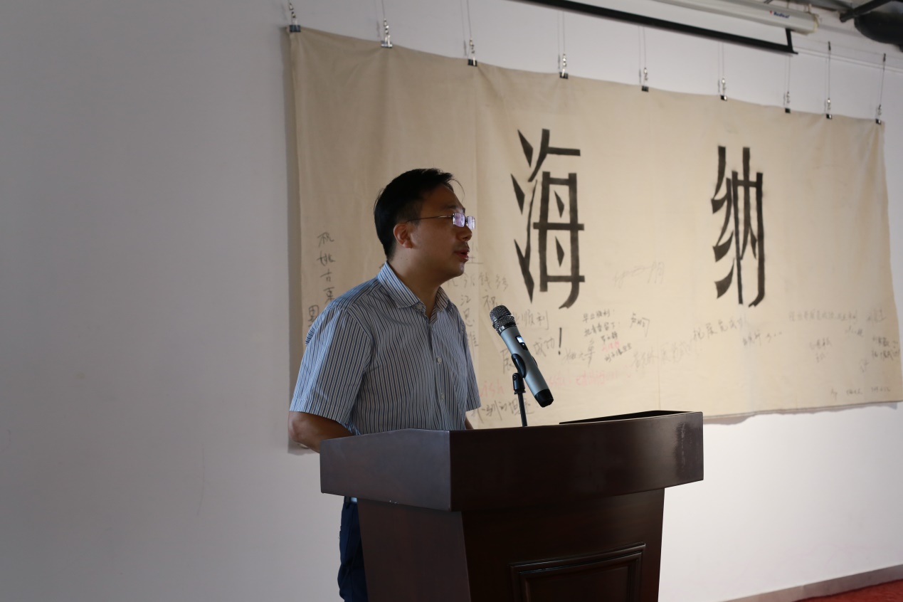 6月12日上午,美术学院2015级学生姚古东个展“海纳”于华中师范大学美术学院八楼展厅顺利开幕。校团委书记徐刚教授、美术学院党委书记付义朝、美术学院院长辛艺华教授等领导老师出席开幕式。美术学院2015级本科生班主任肖笛主持开幕式。