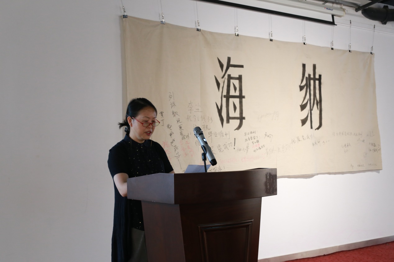 随后,美术学院院长辛艺华致辞。辛艺华教授高度赞扬姚古东同学刻苦勤奋的优秀品质,并由衷感谢指导老师们对姚古东同学的精心培育。“海乃百川,有容乃大,唯有虚心,方有丰盈。”辛艺华寄语姚古东同学继续保持对待美术的这份热情与专注,不忘初心,扬帆远航。