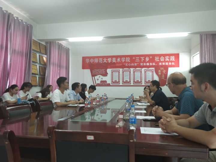 7月15日下午,华中师范大学美术学院“艺心向党”党员服务队在蒲团乡横山中心小学会议室举行暑期社会实践开班仪式。共青团鄂州市委书记胡晓炎,华容区委常委、统战部长范国珍,蒲团乡党委书记严平,蒲团乡党委副书记胡奇、横山中心小学校长严迎风,华中师范大学美术学院党委书记付义朝、华中师范大学美术学院党委副书记李宪玲以及16名暑期社会实践队成员出席此次开班仪式。会议由团区委书记方芳主持。