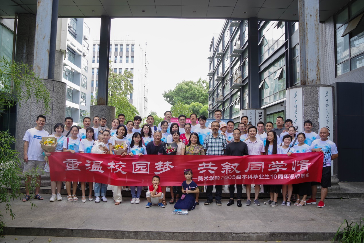 2019年8月10日,美术学院2005级校友重返学校举办毕业十周年纪念活动。毕业十周年,相聚一堂,重温校园时光,共叙同学情谊。本次十周年纪念活动包括师生座谈、聚餐祝福、篮球友谊赛以及合影留恋。