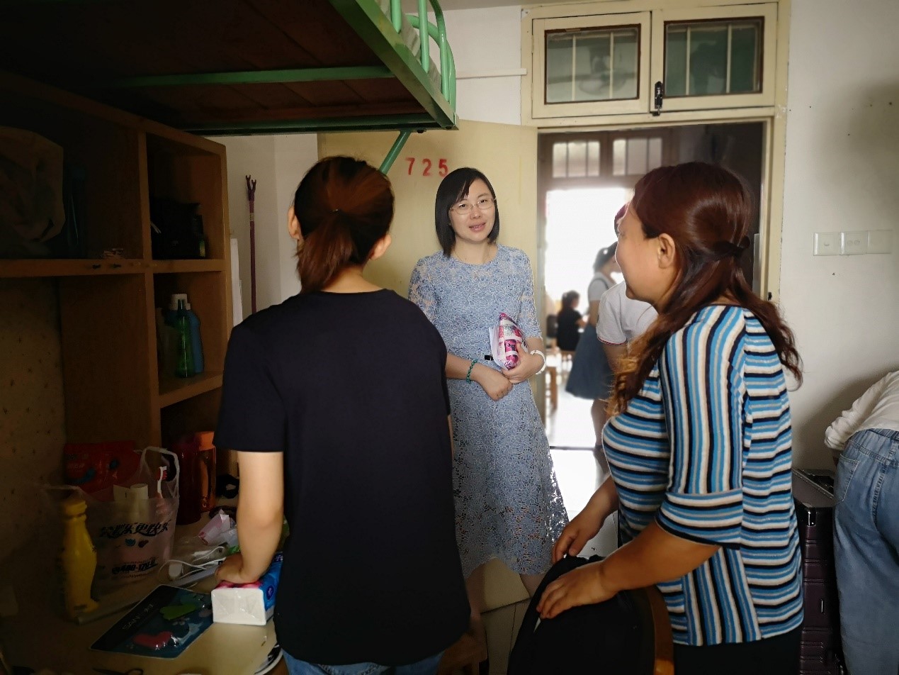 新学期伊始,为了解美术学院新生在校的住宿条件,给同学们创造一个良好的校园生活环境,8月31日中午十一点半,美术学院党委书付义朝、党委副书记李宪玲、院长辛艺华、副院长王文新、辅导员喻颖、辅导员张爱、辅导员刑婷婷、辅导员张锦航、辅导员王璐分别来到西六舍、元二舍、元三舍看望了美术学院的新生们。