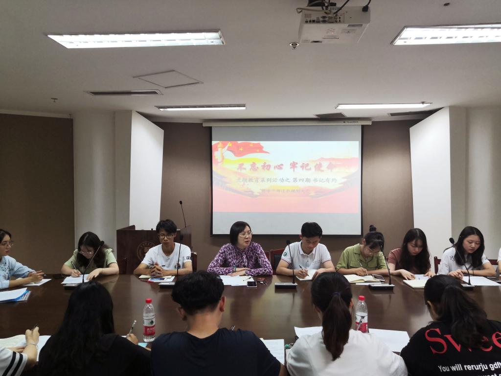 9月27日,“不忘初心,牢记使命”主题教育系列活动之第四期 “书记有约”于美术学院五楼会议室顺利召开。美术学院分党委副书记李宪玲、团委书记张锦航、2017级辅导员程思源出席此次会议,院团委学生会主席团成员及各部门部长、挂靠社团负责人参加此次会议。