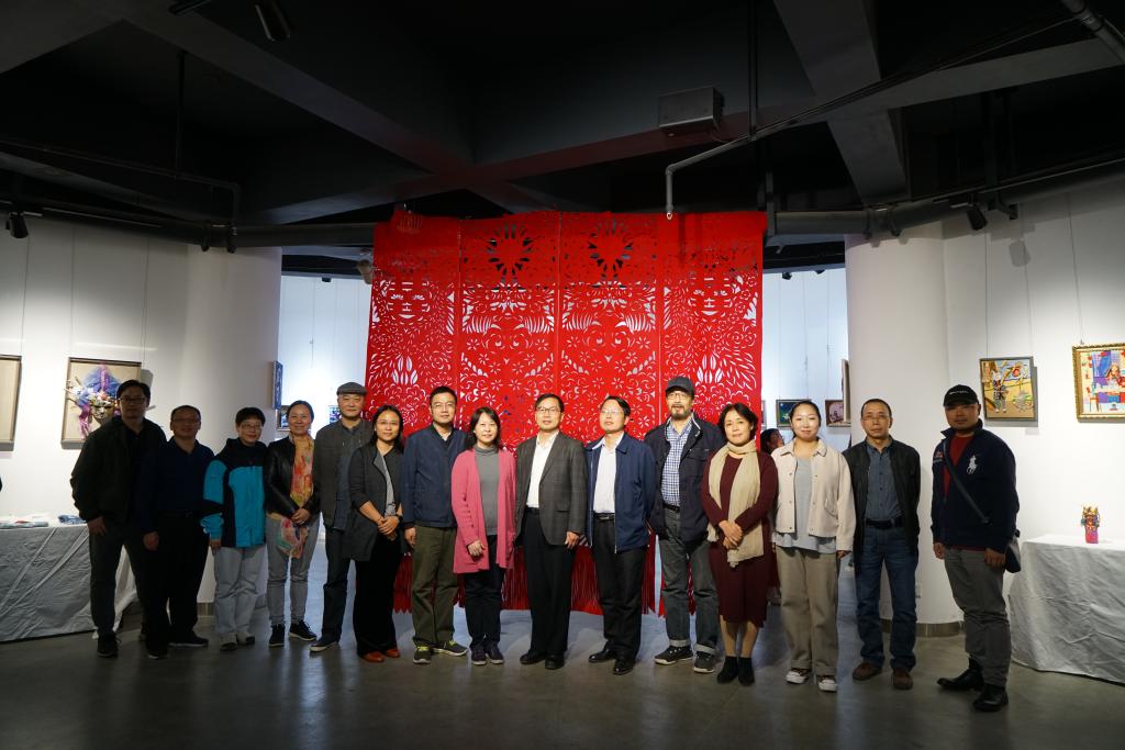 本次展览汇集了《民间美术与手工制作》课程在美术学院开设五年来历届学生留存下来的优秀作品,涵盖了剪纸、面具、拼贴画、扎染等不同形式多达二百余件作品。此课程还面向全校同学开设,作为核心通识课,全校各专业同学也提供了大量精品。开幕式最后,到场领导、嘉宾与师生们合影留念。