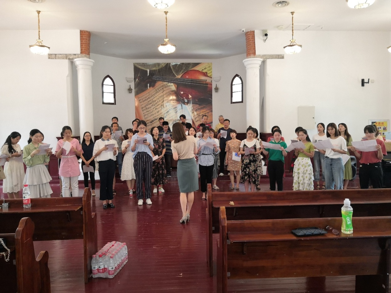 2019年9月11日上午12:20分,武汉四中教师合唱团于教堂进行了每周一次的合唱排练,全体实习生也积极参与其中,为迎接120周年校庆贡献自己的一份力量。