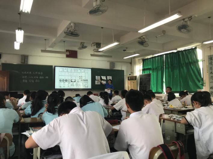 第一节课由学科教学专业的研究生杨新慧。她带来的是初二年级的综合实践课——《传统纹样·民族特征》。在整个教学活动中,杨老师教态亲切,通过一些小故事把学生们的兴趣的吸引过来,学生们在课堂上的互动很好,整个教学活动环节衔接的非常流利。