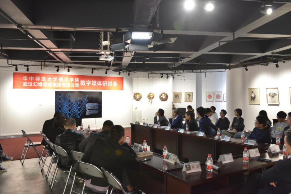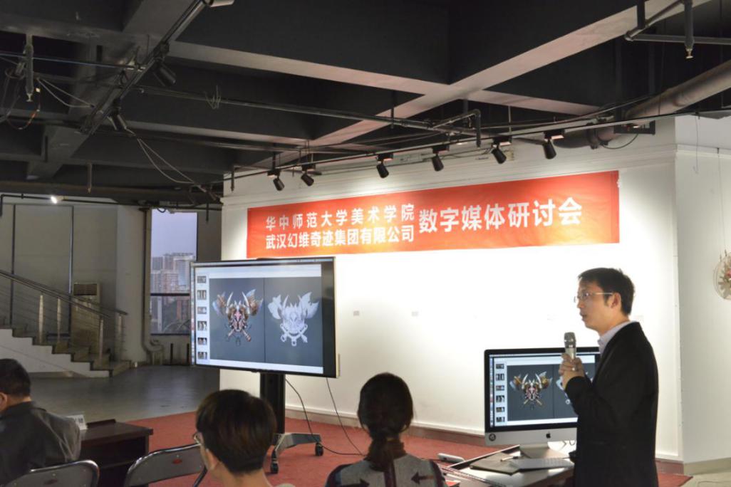 2019年11月15日(星期五)下午4时,我院数字媒体专业师生与幻维奇迹集团有限公司主要技术骨干于华中师范大学博雅美术馆举行数字媒体专业研讨会。出席本次研讨会的双方主要嘉宾有:幻维奇迹集团有限公司董事长王犇、幻维奇迹公司高级工程师何骐鸣,以及幻维奇迹公司重要技术骨干代表,华中师大美术学院出席的代表有环境艺术设计教研室主任魏勇教授、数字媒体设计教研室主任郑达教授、美术学院社会服务部主任肖涛以及美院该专业方向师生群体。