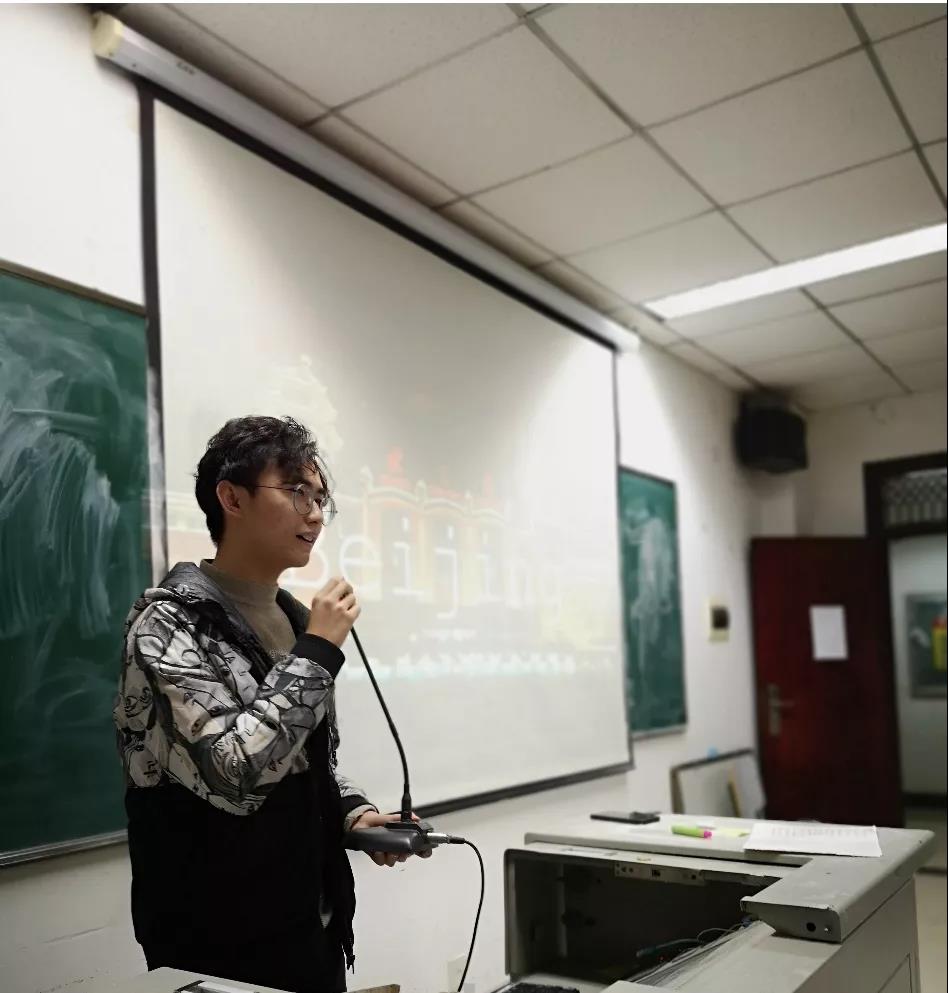 12月1号晚,美术学院2019级全体同学在美院405教室照常进行每周晚点名活动。本次晚点名上,大四视觉传达设计专业的王斌学长分享了他在北京的实习故事。