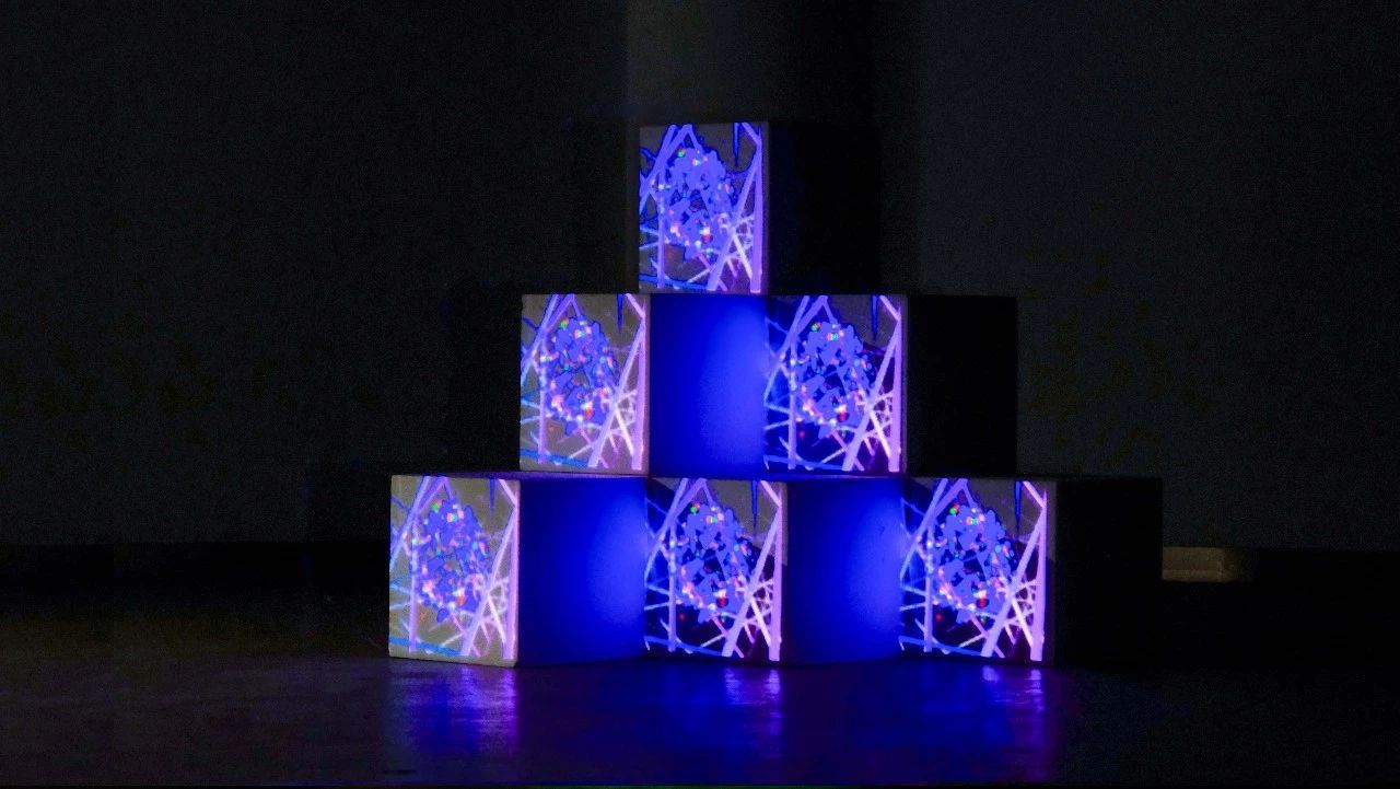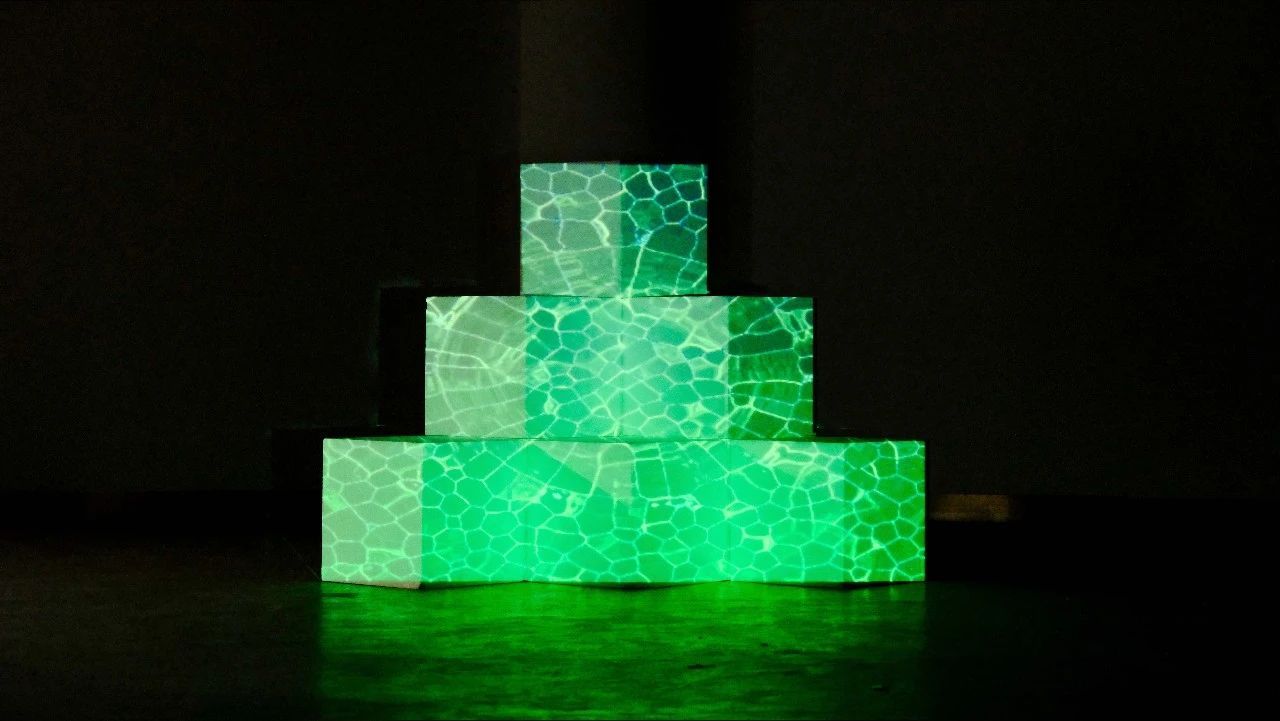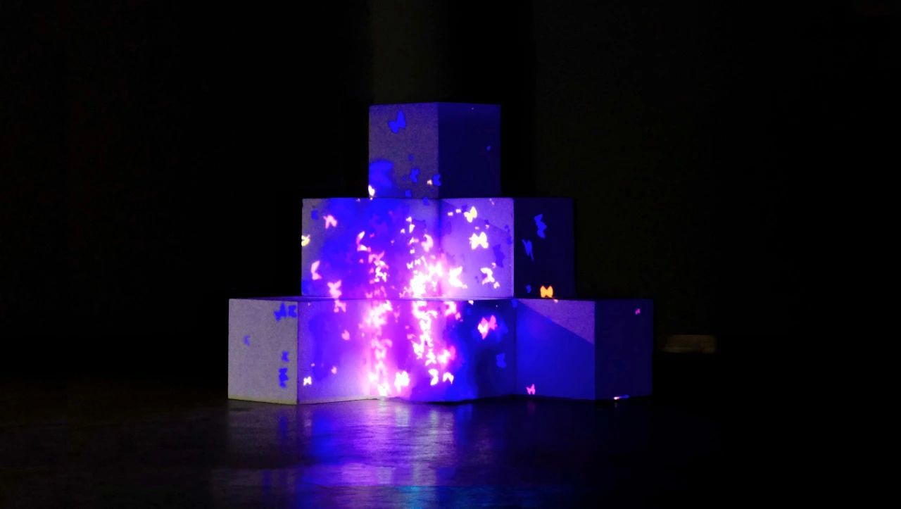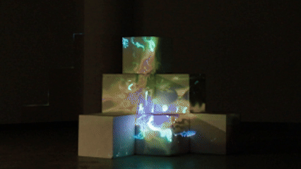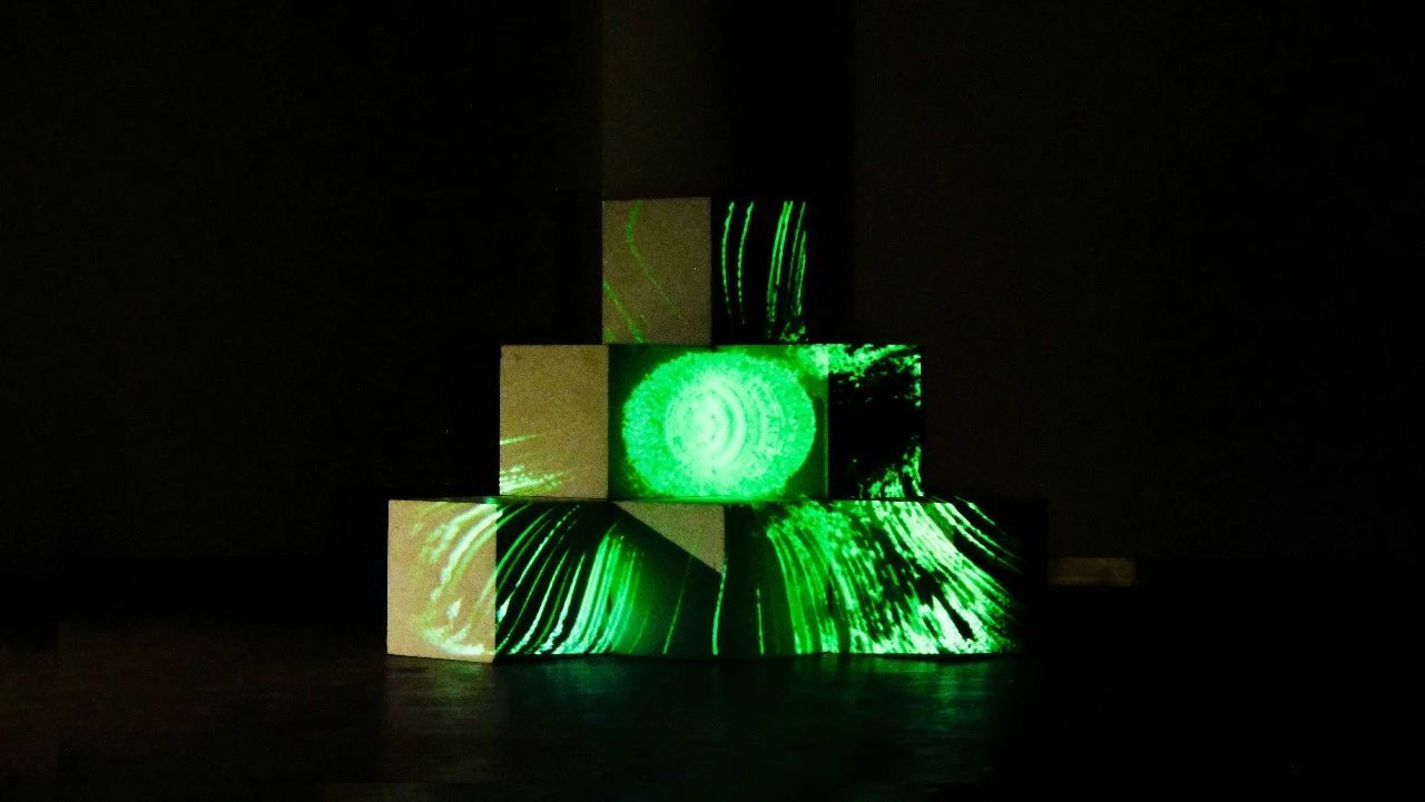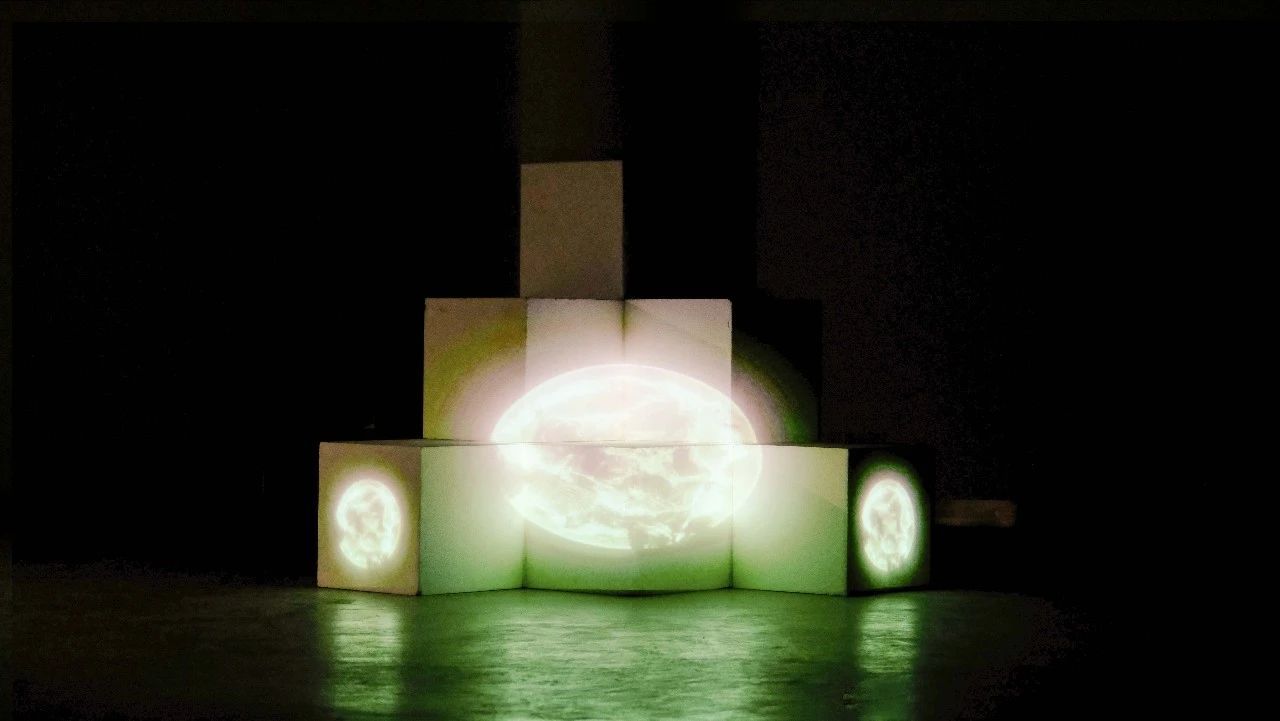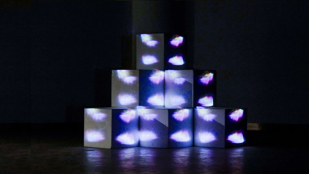 空间构建与展览布置:课程后期,学生将作品从屏幕转化为空间装置,结合投影映射技术与空间布局进行布展尝试。每组作品最终形成一段不超过1分半钟的音画互动内容,通过墙面投影、地面反射或结构映射,将虚拟内容与物理空间深度融合。