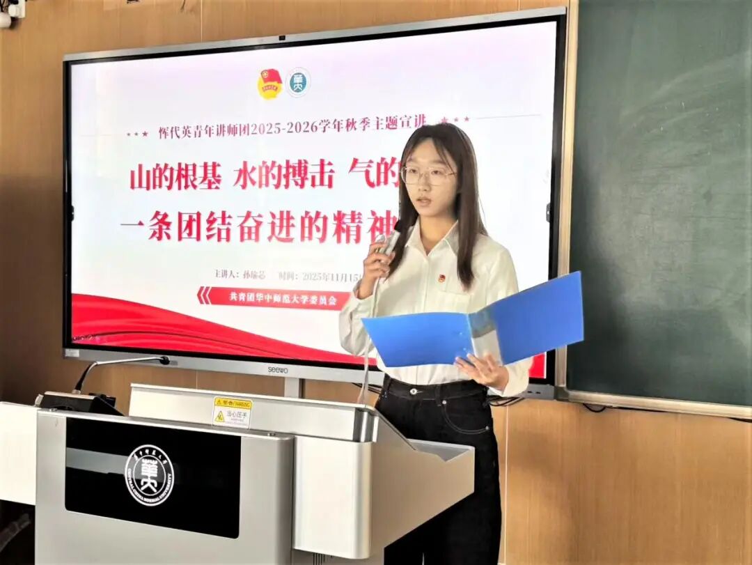其中,恽代英讲师团成员孙瑜芯以《团结奋斗铸伟业,三大精神照前路》为题,深入宣讲习近平总书记考察湖北时强调的“三大精神”;胡潆月同学则以《弘扬伟大抗战精神,推进民族复兴伟业》为主题,带领学员重温抗战历史,赓续红色血脉。