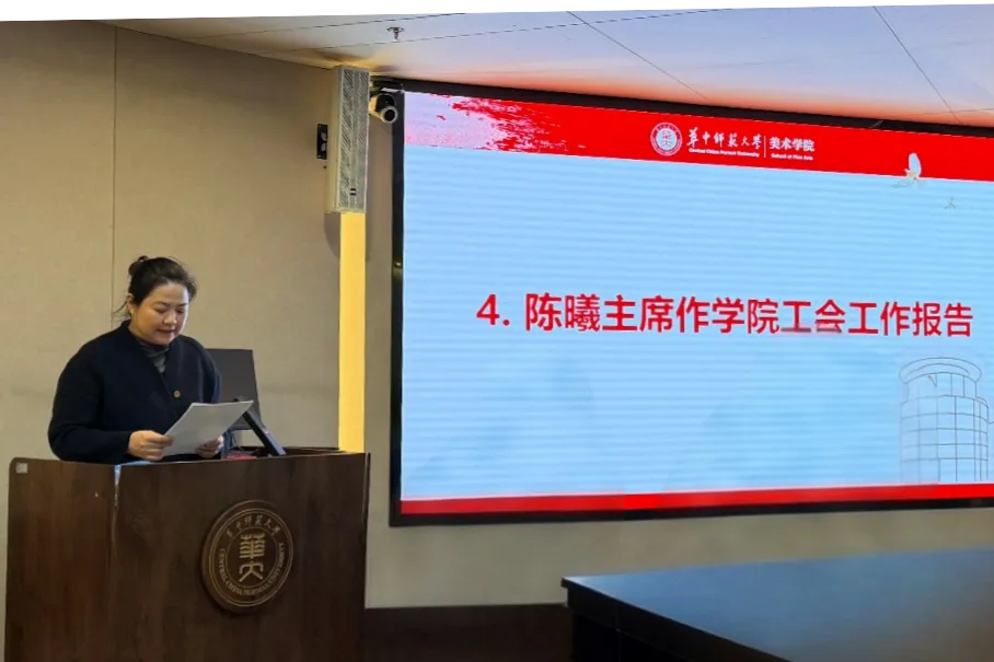 2026年1月16日上午,华中师范大学美术学院第五届第一次教职工代表大会在美术学院五楼报告厅隆重召开。校工会常务副主席易仲芳,美术学院党政领导班子成员及全体教职工代表出席会议。大会全面总结学院“十四五”期间的发展成效与经验,系统谋划“十五五”时期学院改革发展蓝图,是一次统一思想、凝聚共识、汇聚力量的重要会议。会议由学院党委副书记刘倩主持。