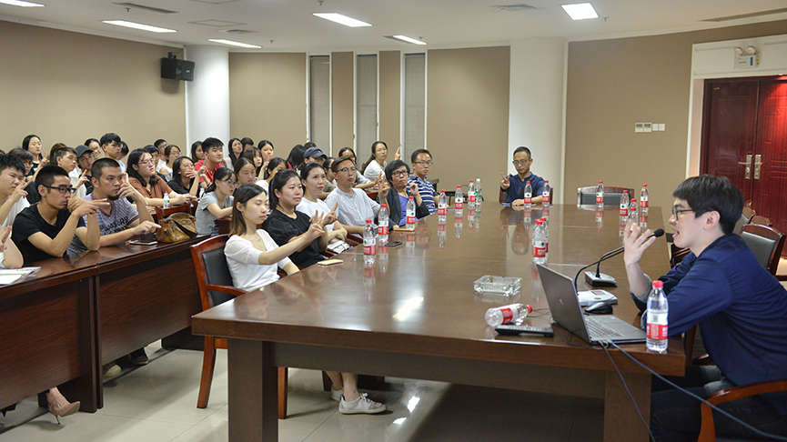 (通讯员 肖涛)2018年9月17日晚7点,中央美术学院实验艺术学院陈抱阳老师,做客华中师范大学美术学院五楼会议室,做了题为《联觉未来科技艺术——作为作者的科技》的讲座。此次讲座由美术学院数字媒体艺术专业主办,受到了武汉K11艺术村与低科技艺术实验室的相关支持,我院数字媒体艺术专业的郑达老师主持,众多在校师生及校外艺术家、艺术机构来参加了此次讲座。