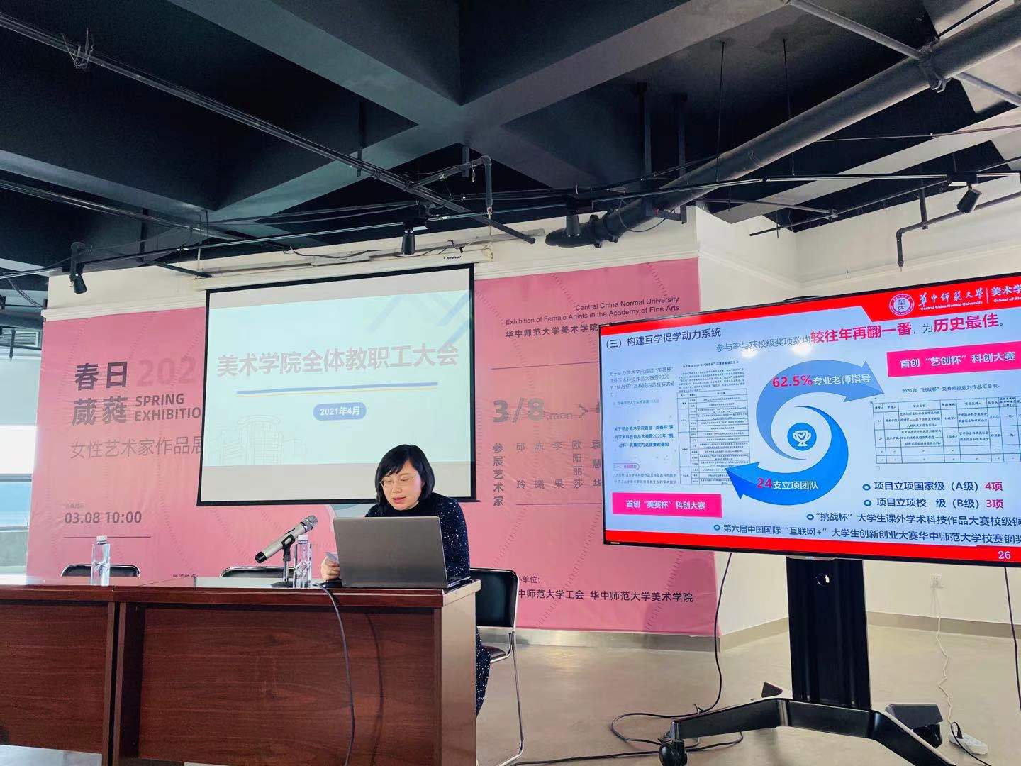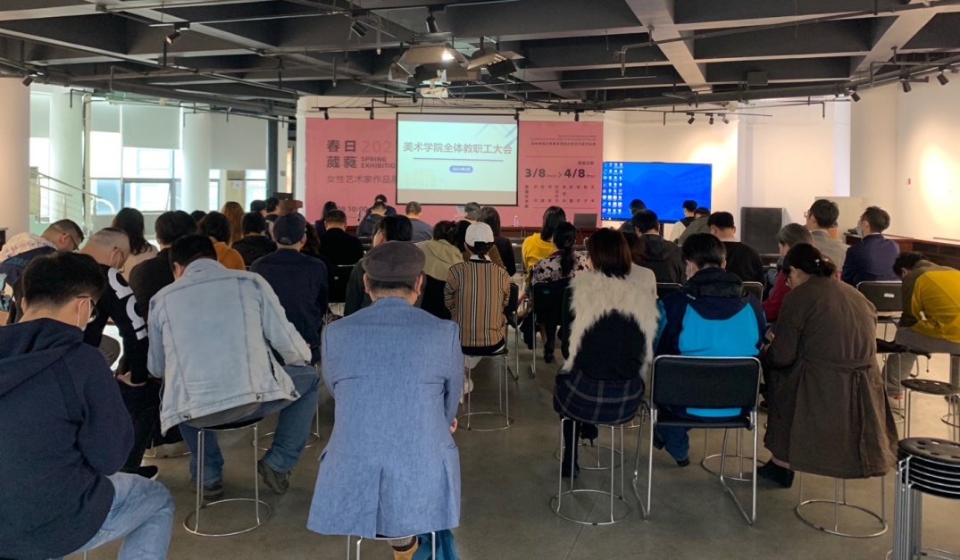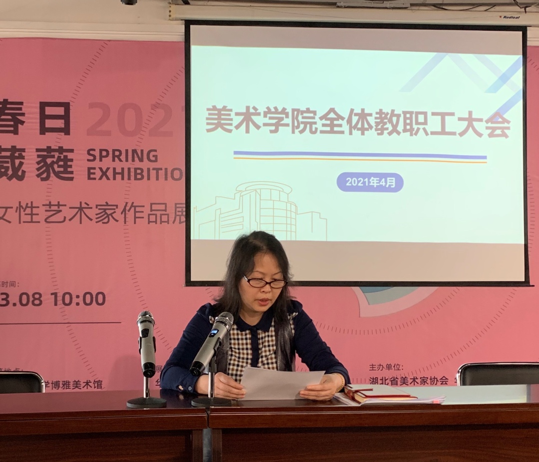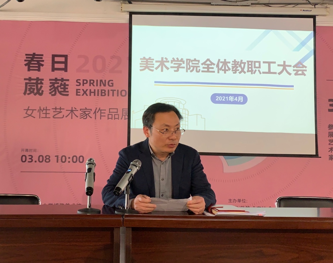 2021年4月21日下午2:30,美术学院在十号楼博雅美术馆召开了全院教职工大会暨师德师风教育会议。会议由学院党委书记付义朝主持。