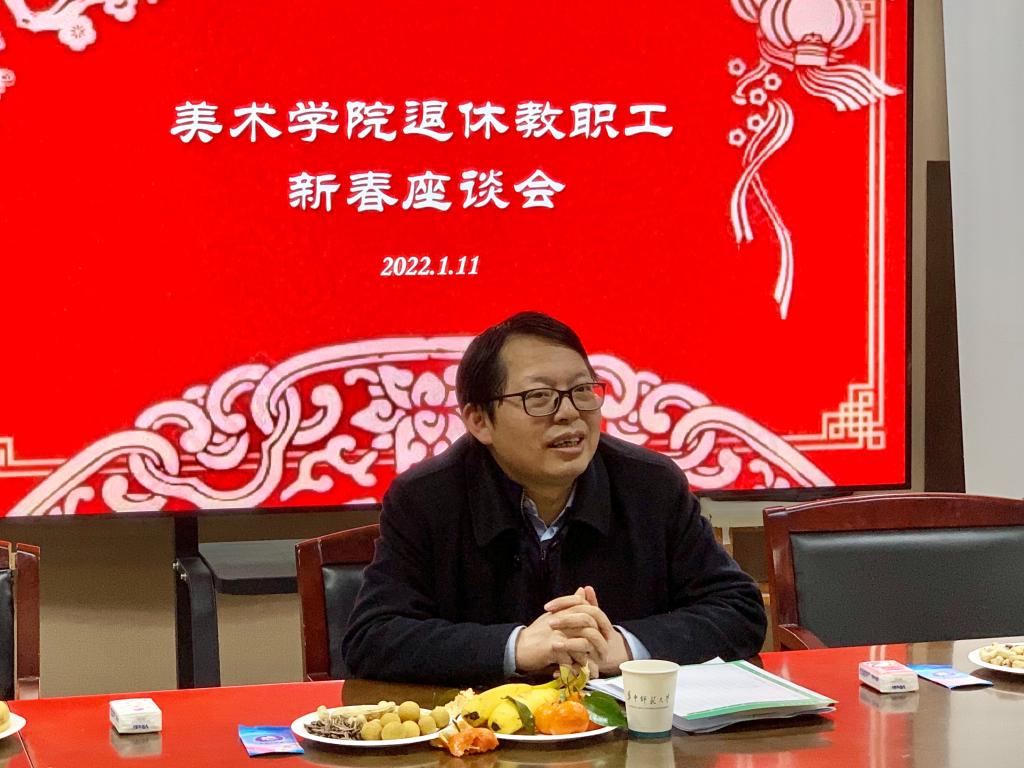 会上,辛艺华院长表达了对时光飞逝的感慨,希望2022年老师们更健康、更快乐。李宪玲副书记感慨从一年又一年的座谈会中看到了老师们积极向上、健康的生活状态,也希望新的一年里老师们健康平安。郑达副院长表示,自到美术学院工作以来,已有十余年,看到大家都感觉像家人一样亲切,由心而感“艺术是有传承的,学院是有文化有脉络的”,感谢老师们对学院的贡献,希望在未来邀请退休老师们参与到课程教学中来。占小利主任表示期待2022年与老师们再次出游,组织更丰富的活动。