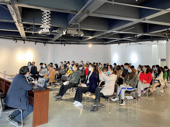 党委书记付义朝代表领导班子进行述职述廉报告。报告围绕“以四个聚焦推动学院高质量发展”展开,聚焦政治建设抓引领、聚焦根本任务重实干、聚焦特色优势求突破、聚焦关键指标上水平。接着,付义朝书记从带头加强理论学习、带头践行一线规则、党风廉政情况等7个方面报告了个人履职情况。随后,辛艺华院长、李宪玲副书记、王文新副院长、郑达副院长分别对2021年工作进行了述职述廉报告。最后美术学院全体教职工对美术学院领导班子和领导干部2021年工作以及郑达副院长试用期一年工作进行了线上民主测评。