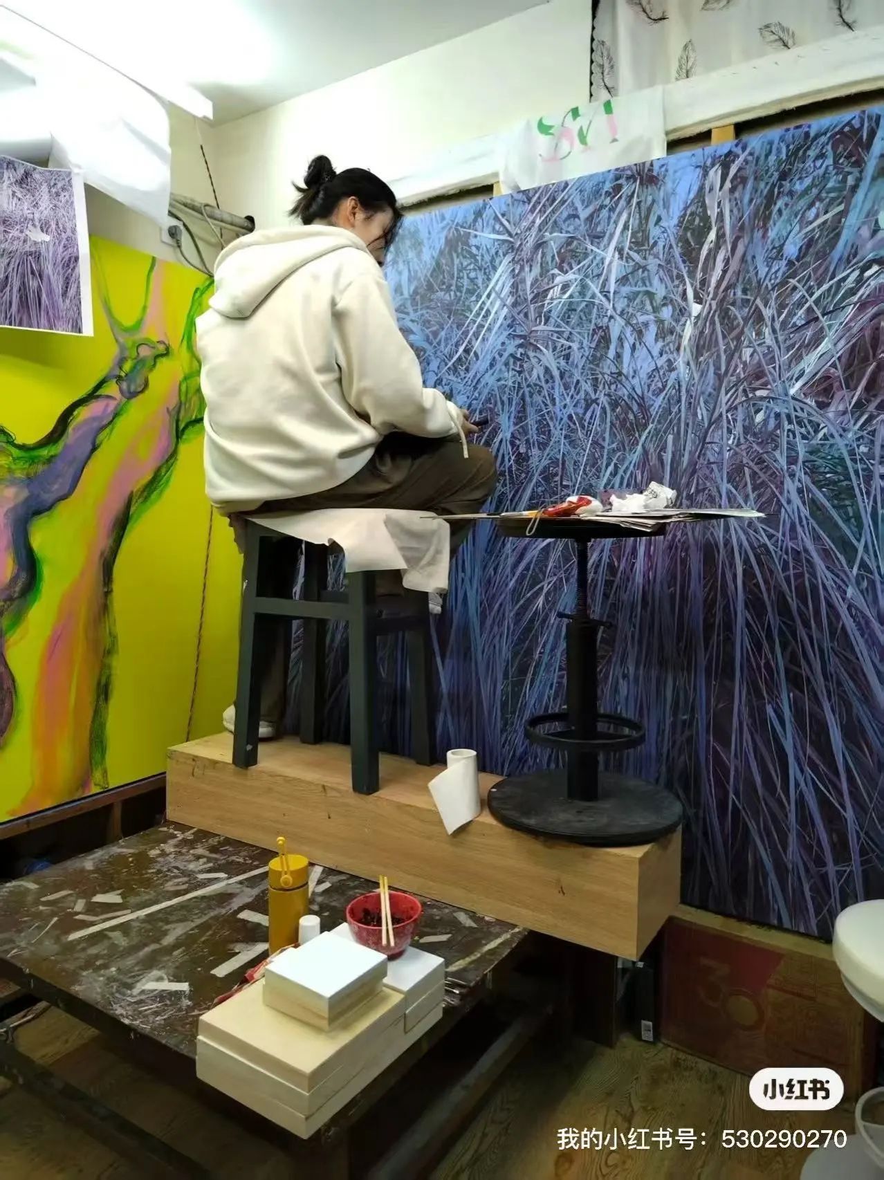 本次罗亚丽入围的作品《繁.影》在吴青老师的指导下创造于2024年,作品尺寸为240×170布面油画。