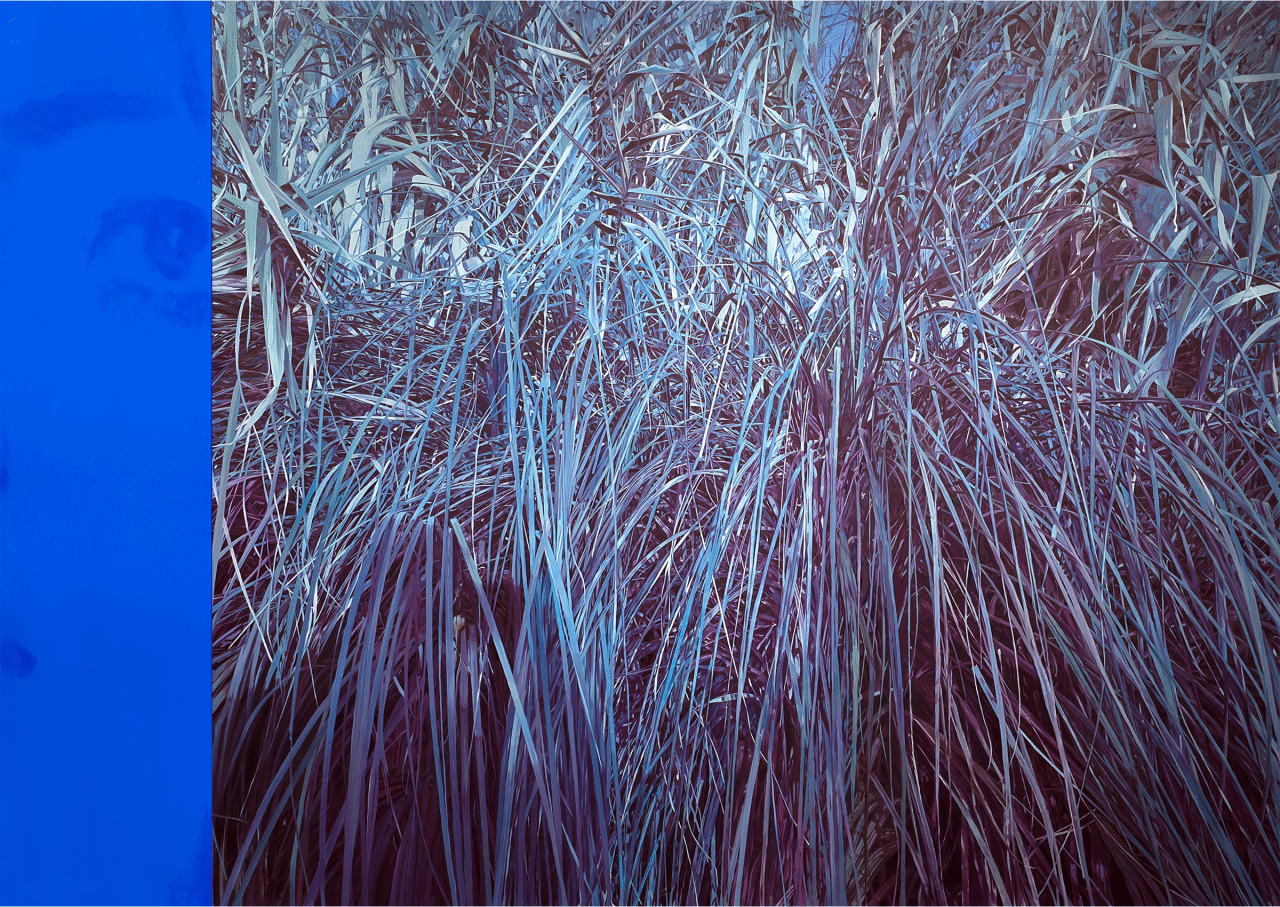《繁·影》试图打破对立,将自然与人影融为一体:芦苇的繁茂象征生命的蓬勃,人影的孤寂隐喻存在的本质。紫色主调渲染梦幻氛围,蓝色副画暗藏“未言之谜”,引发观者对自然、自我与永恒的思考。
