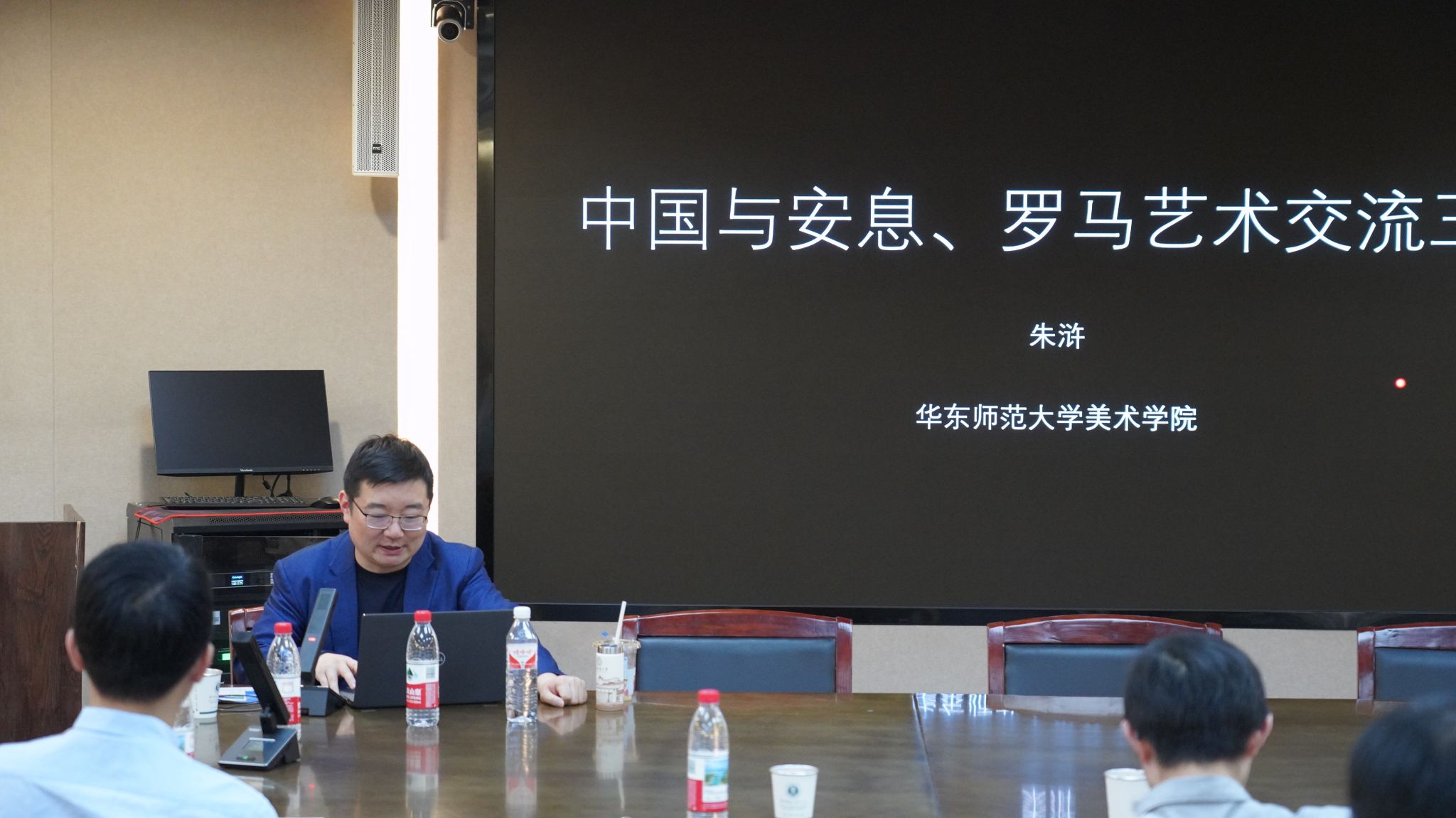 2025年4月18日下午,华中师范大学美术学院主办的“中国与安息、罗马艺术交流三题”专题讲座于美术学院五楼会议室召开。本讲座是由北京大学历史学博士后、美术学博士,华东师范大学美术学院教授,美术史论研究所所长,博士生导师朱浒教授主讲,华中师范大学美术学院副院长蔡敏教授主持,学院诸多师生积极参与。