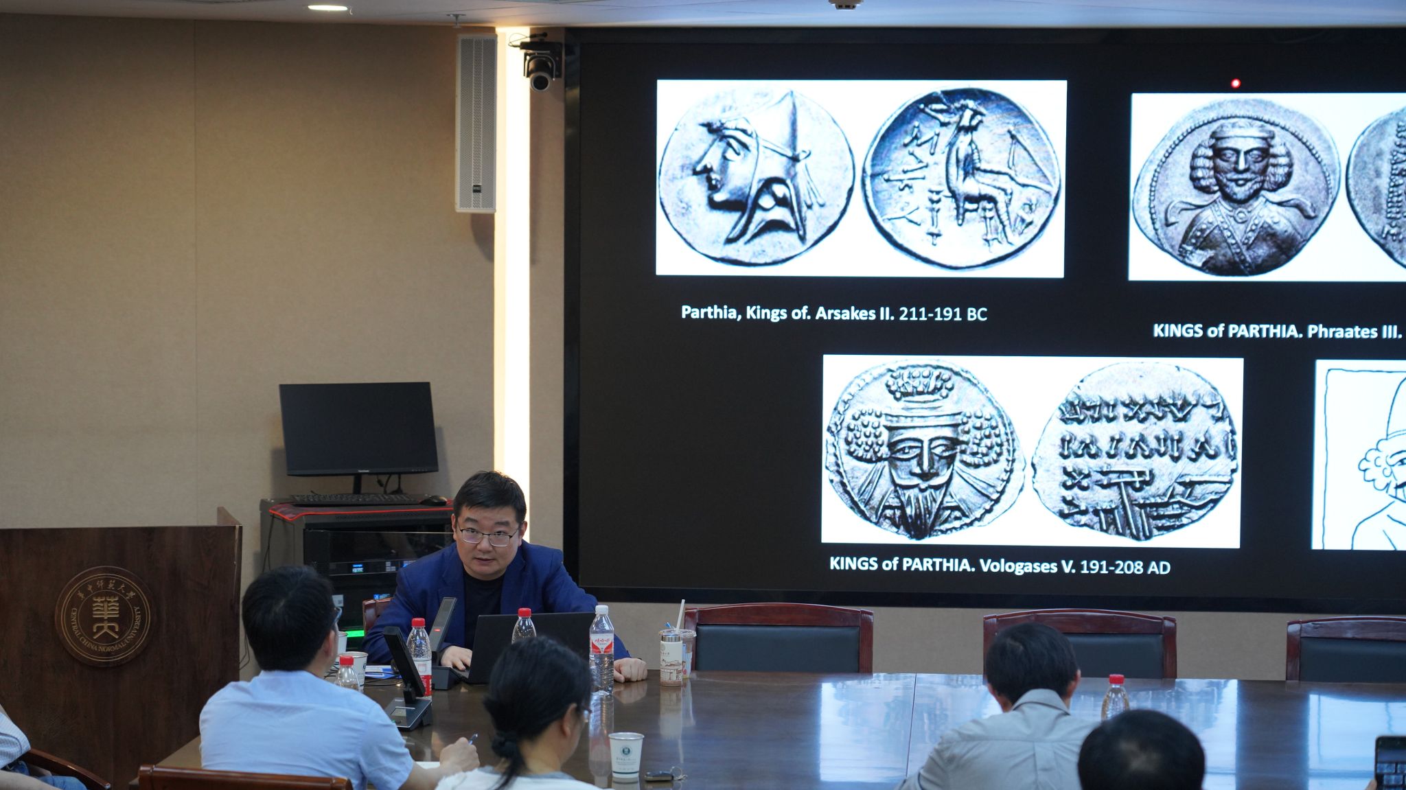 朱浒教授从新发现的安息人与安息雀画像石、汉代胡人席镇与安息举右手人像、浙江海宁画像石墓中新发现的罗马艺术因素三方面分享了他本人关于中国与安息、罗马艺术交流的研究。