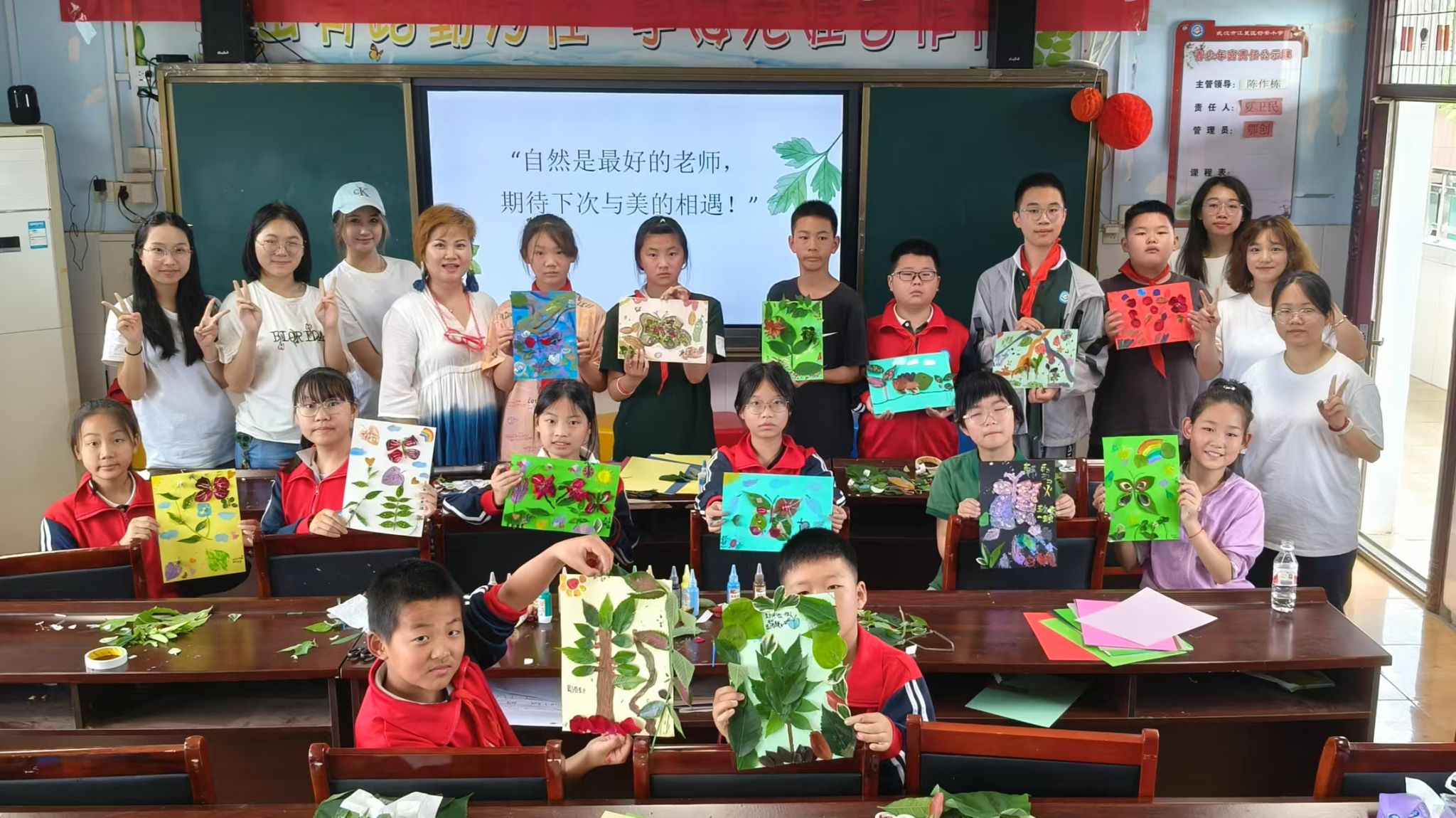 为落实《关于全面加强和改进新时代学校美育工作的意见》及乡村振兴战略,5月28日,华中师范大学本科生院支持的乡村品牌十大金课之一:“乡村中小学美育课堂”实践团队,由美术学院欧阳丽莎老师带队走进武汉市江夏区舒安小学,开展“自然之美·树叶画”主题教育活动。舒安小学校长、多学科教师及驻五里墩村工作队全程参与,共同探索“以美育促振兴”的乡村教育创新路径。