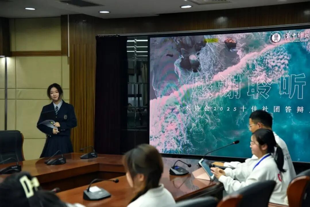 美术协会与学院学生会社团管理部门紧密协作,顺利通过年审考评,精心准备申报十佳社团的各项材料。在终选答辩现场,会长刘子乐同学代表美术协会进行了精彩的陈述展示,清晰展现了美术协会“以美润心,艺路相传”的育人实践与丰硕成果,获得了评委的一致认可。