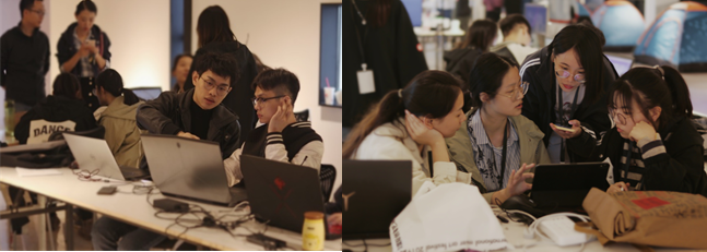 10月25日下午,高校72小时工作坊在武汉创意天地正式启动。本次比赛由我院何宇、李子健老师带队参加,10名来自数字媒体艺术专业的同学组成团队。到达现场后大家迅速搭建工作硬件,并立刻进入了工作状态。经过72小时的努力,同学们在带队老师的指导下完成了VR互动装置作品《我看到的和你看到的》。作品的创意来源于在社会活动中,人在观看和参与的同时,不可避免地被他者观看,像是一场视觉权利的争夺游戏。同一个行为在不同的视觉角度和解读方式下会传达不一样的信息。团队成员希望通过该作品来呈现这个“观看,被观看,被解读”的过程。