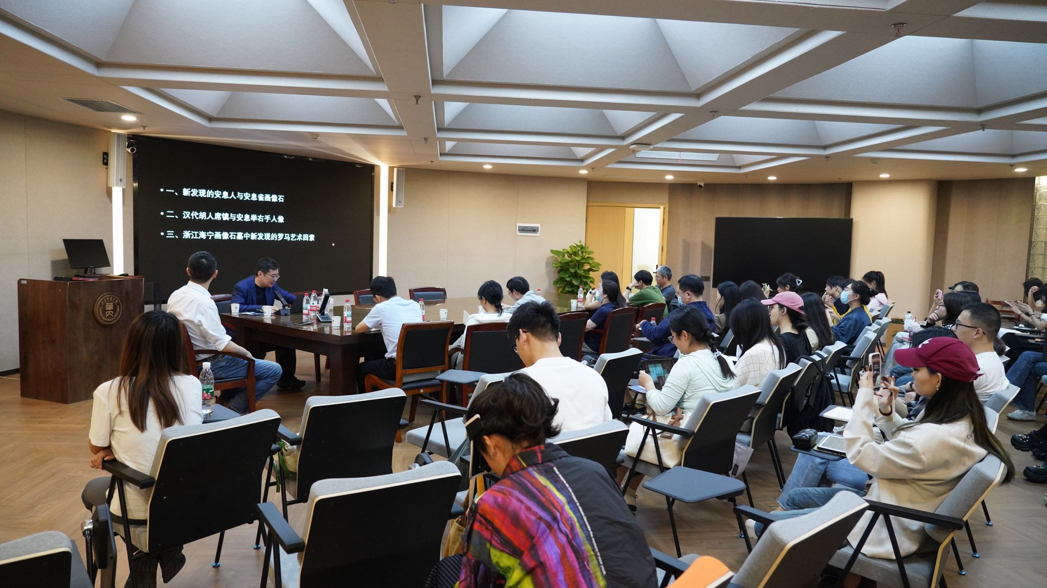 朱浒教授从新发现的安息人与安息雀画像石、汉代胡人席镇与安息举右手人像、浙江海宁画像石墓中新发现的罗马艺术因素三方面分享了他本人关于中国与安息、罗马艺术交流的研究。
