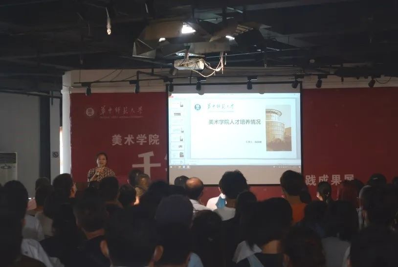 美术学院副院长王文新和陈晓娟首先对学院整体情况和教学情况进行介绍。王文新副院长表示,华中师范大学美术学院现在有5个本科专业,美术教育专业、绘画专业、视觉传达设计专业,环境设计专业和数字媒体艺术专业,教职工180人,其中教授19人,获得省级名师5人,获得全国教育硕士优秀教师1人,学院将会为2020级新生配备优秀的师资力量,也会给同学们提供更加广阔的平台。副院长陈晓娟表示,美院的师生作品都有参加国内外的展览并获奖,彰显了学院的综合实力。关于人才培养方案,美院的培养特色是强调实践与理论相结合,要把真正的创作与相关的社会实践相结合。由于同学们在学校里面学习的知识还是有限的,所以美院学子走出校园走向不同的地区进行写生,进行社会实践,并进行国际交流。她还表示,华中师范大学的校训是求实创新,立德树人,她希望一位同学能够记住这8个字,时刻共勉。