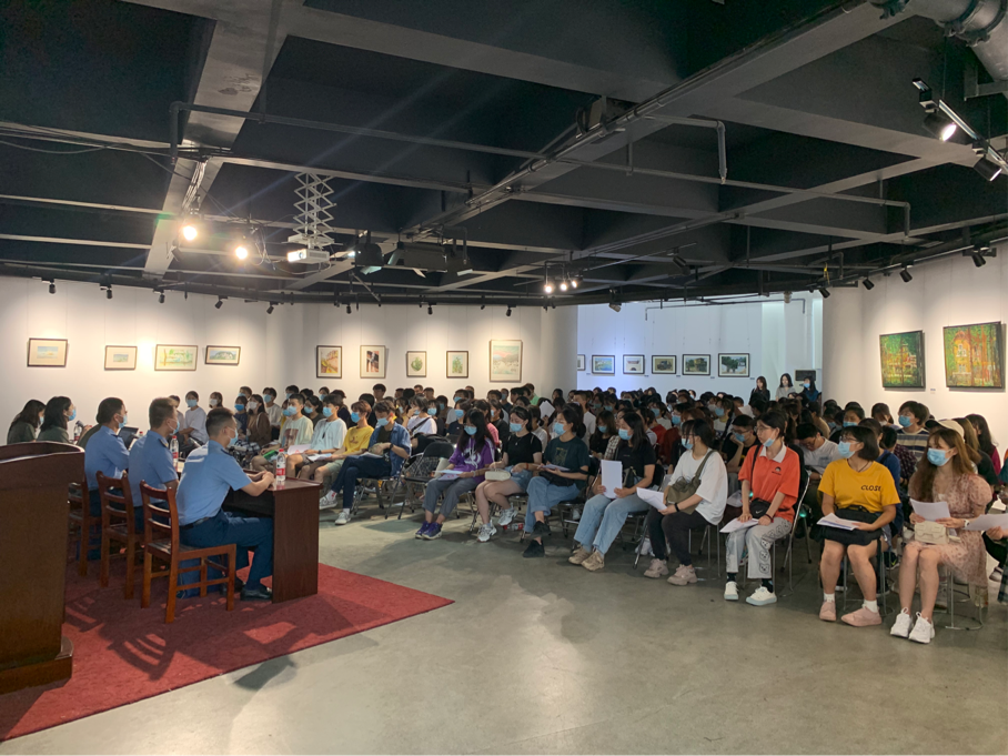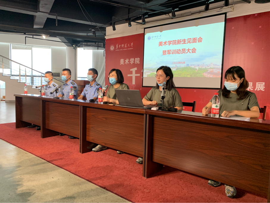 9月13日下午,华中师范大学美术学院2020级学生军训动员大会在美院八楼召开。党委副书记李宪玲、新生辅导员王璐、汤益迦、17连教官出席动员会。