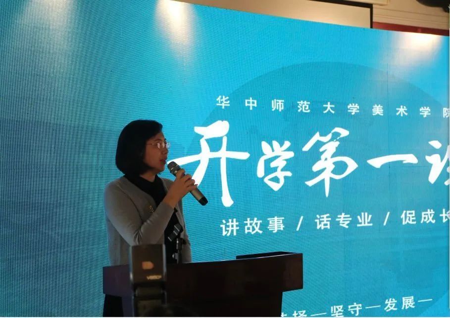 课堂伊始,李宪玲书记首先为2020级新生送上祝福并发表讲话,她强调,要坚持把立德树人作为中心环节,把思想政治工作贯穿教育教学的全过程,实现全程育人,全方位育人,努力开拓高等教育事业新局面。美术学院开设的“开学第一课”正是围绕立德树人这个根本任务,为全体新生打造的思政新课。本次的课程将以专业老师访谈的形式,将课堂思政和思政课堂深度融合,充分发挥协同育人的功能。李书记表示,开学第一课不仅是大学,更是人生的第一课,对此,同学们要有所获、有所悟、有所行。她也希望同学们通过系列课程,实现理论到实践、知识汲取到信仰信念的转化和升华。