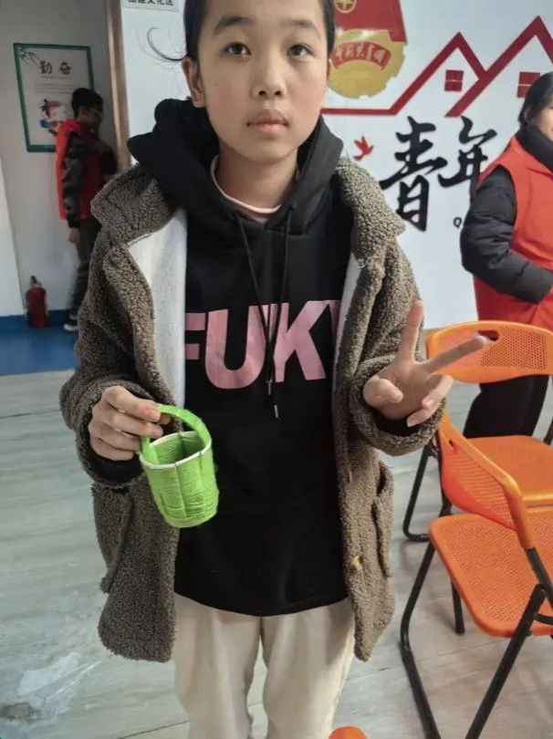 寒假公益班学生体验编花篮手工课