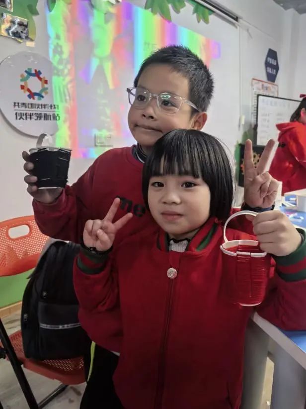 课堂上,孩子们热情高涨,积极参与到手工制作中。朱家仪耐心讲解编花篮的技巧,孩子们在她的指导下,不仅学会了这门传统手艺,还在动手过程中培养了耐心和专注力。