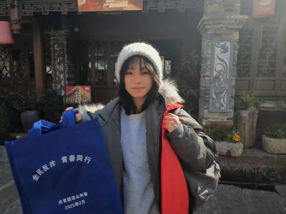 来自四川省凉山彝族自治州的2024级设计学专业的甘雨同学作为志愿者联络员参与西昌市 “全民反诈・青春同行” 志愿宣传活动。