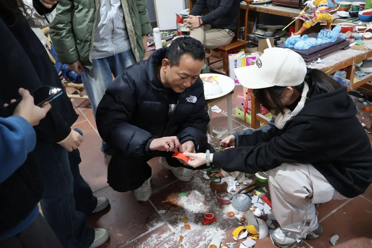 通过探索嵌瓷与数字技术的结合,团队提议建立“嵌瓷数字博物馆”,利用VR技术还原历史建筑上的嵌瓷全景;倡导鼓励高校艺术专业与传承人合作,培养兼具传统技艺与现代设计能力的复合型人才;探索回收现代陶瓷废料(如卫浴瓷片)用于嵌瓷创作,解决原材料短缺问题;倡导通过短视频和直播等新媒体传播嵌瓷制作技艺,扩大文化影响力。