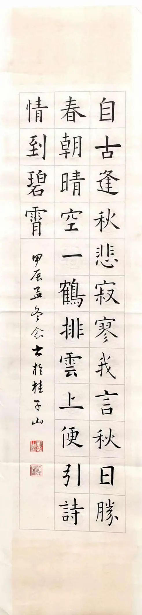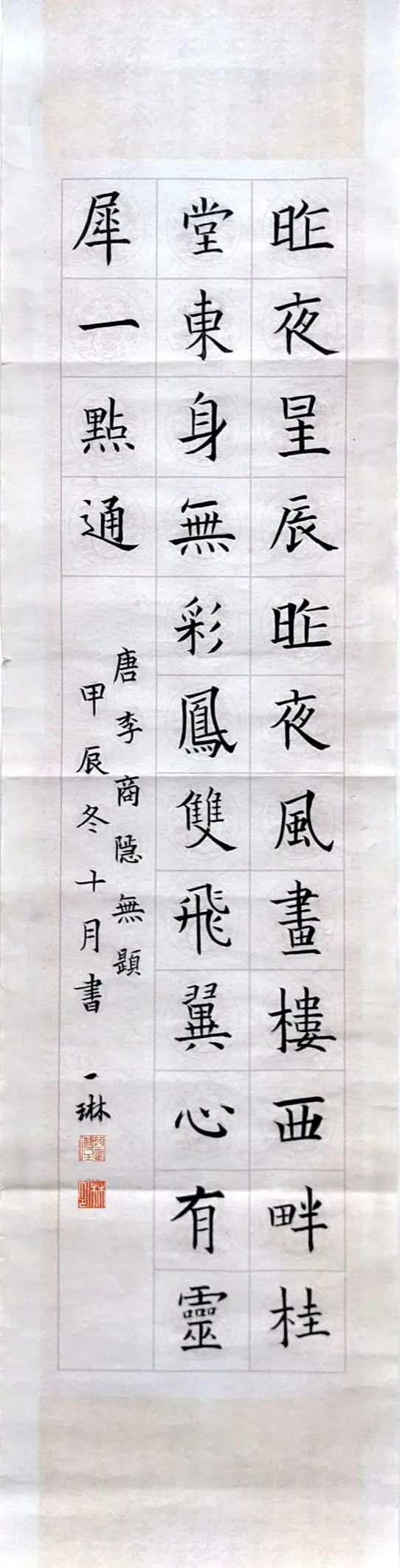 完成用笔和结构的学习之后,将两者综合,通过欣赏古人、今人的优秀作品,提炼楷书的章法形式,完成整件作品的创作,增强学生的文化自信与创作的使命感,提升作品的文化表现力;