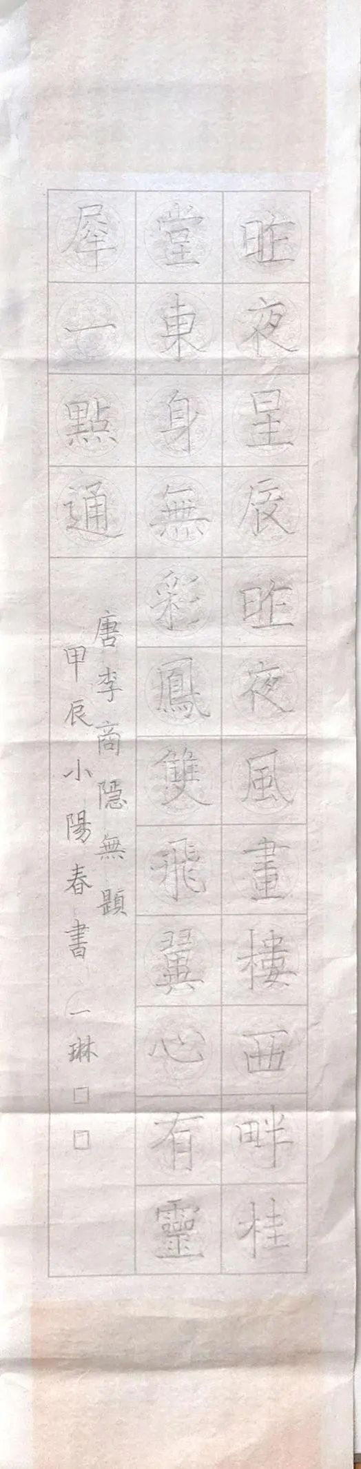 学习司老师的《楷书临创》课程,仿佛开启了一场奇妙的书法之旅。司老师从字形结构与基础笔画教起,细致入微地讲解示范。在老师的悉心指导下,我们从一开始零基础的懵懂无知,到逐渐掌握笔法,最后能临摹并创作出有模有样的楷书作品,每一点进步都离不开司老师的辛勤付出。如今,我们不仅掌握了楷书的书写技巧,更在书法的世界里领略到了传统文化的博大精深和无穷魅力。让我们从零基础逐步成长,感谢老师的辛勤教导和这段宝贵的楷书学习经历!