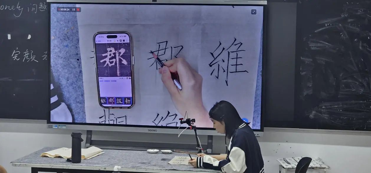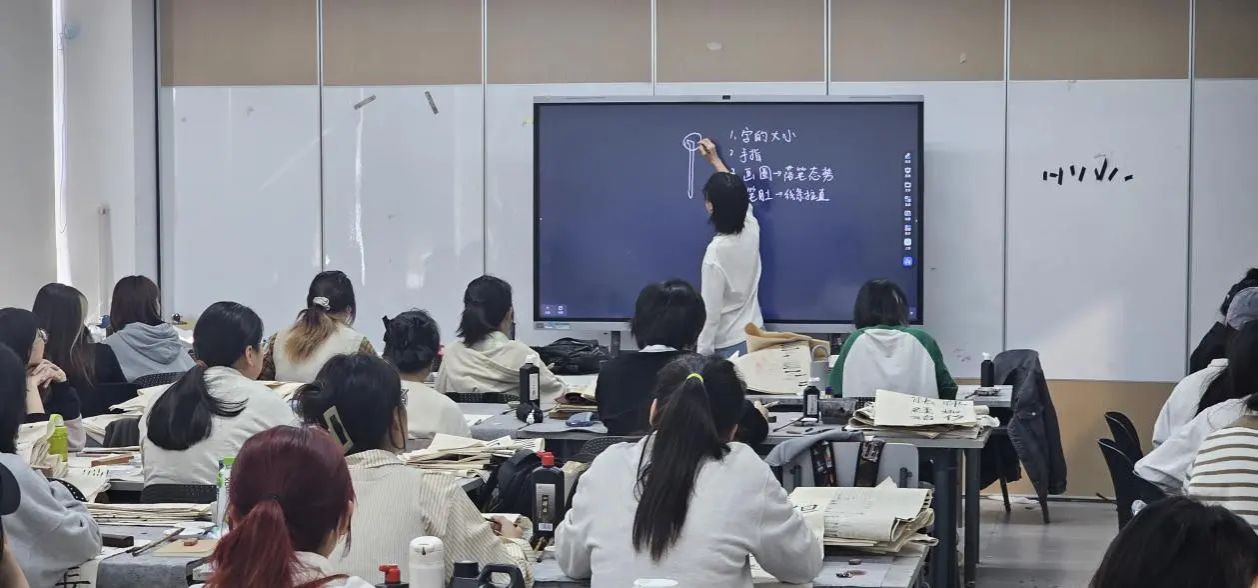 课程融合集中讲授、个别辅导、自学临摹、教师示范演示、名家作品展示、优秀作业展示、视频教学等多元教学方法,并充分利用小雅平台,录制教师示范过程,供学生课后回放,巩固所学,全方位助力学生书法技能与素养提升。