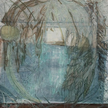 空间与时间的无限必然关乎生命能量的无限。绵延的心流,同时也是永恒的生命之流。郭子对“无限”的专注描绘,是根植于现实与自然,以“生命冲动”为支撑来实现出走与回归的探索过程。郭子通过绘画的方式,为其作为生命个体的超感体验赋予形式,画面中,新的事物与情绪联想不断生成,每一个瞬间都是由过去流向将来的、自由的创造过程,空间的生长与时间的延长使作品在一系列流畅的语言实践与形象建构之下,呈现出神思飞扬后的自由与灵动,往复其间的神与物游,既修补过往记忆中的碎片,也催生精神生命的出游,更在深层自我的审视下让出走的个体返回生命的本真,这由此也构成了郭子独特视觉逻辑下循环反复却恒久稳定的无限世界。