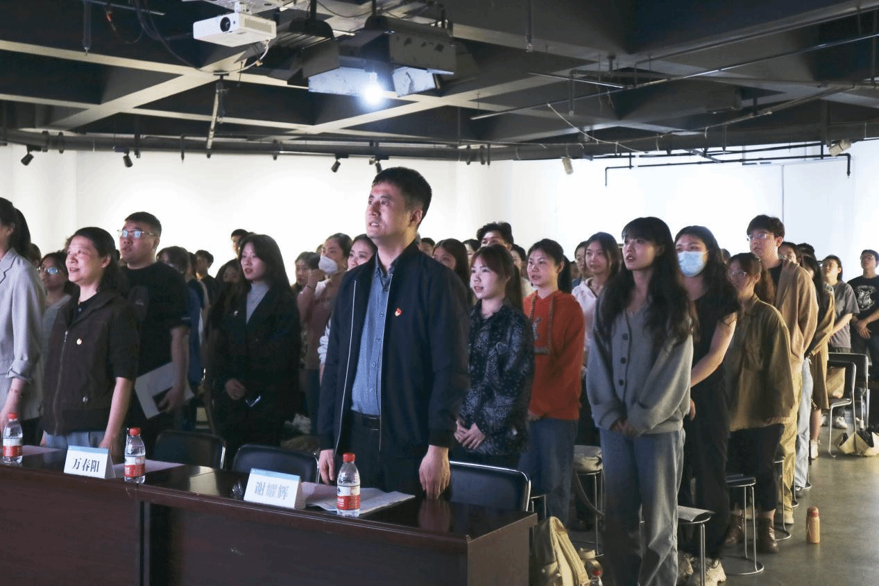 大会第一项,全体与会人员起立、齐唱国歌。这一仪式正式拉开了本次文学院、音乐学院、美术学院发展对象培训班的帷幕。